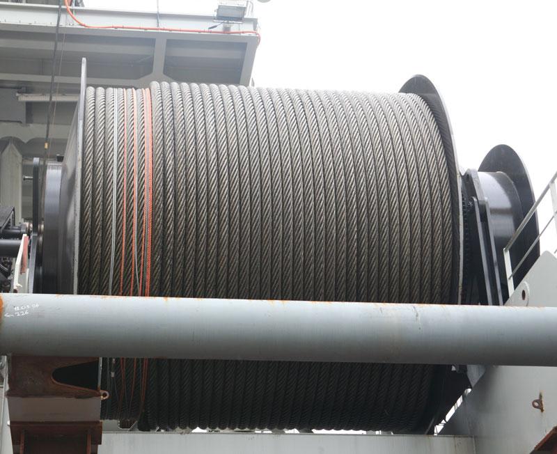 储绳绞车存储来自张紧绞车的钢丝绳,提供恒定的张力。在由于电源故障或紧急停止而触发制动器时,若张紧绞车或储绳绞车仍在牵引,储绳绞车能承受因此而产生的过载。