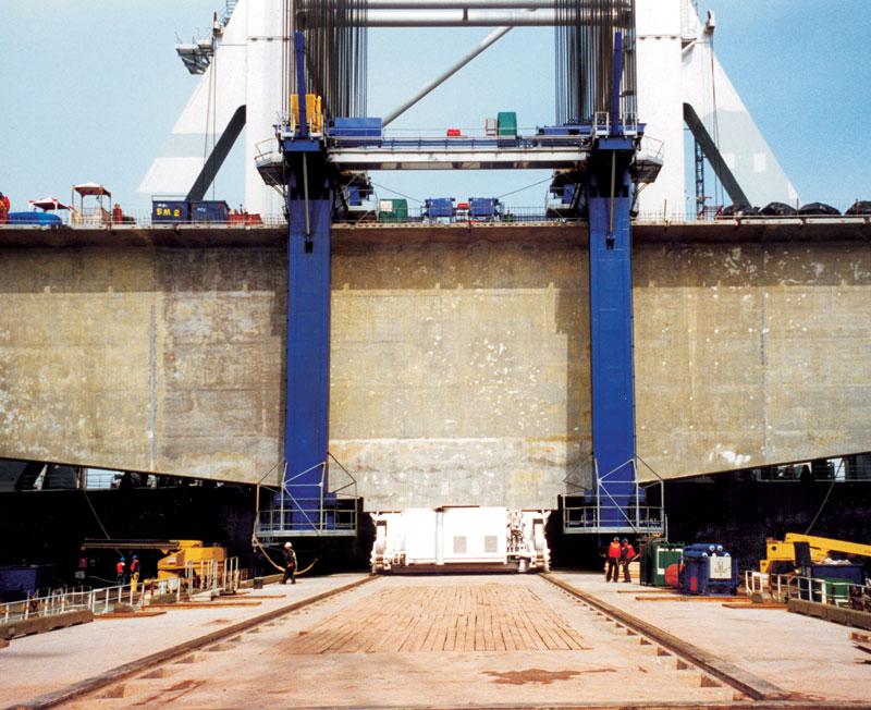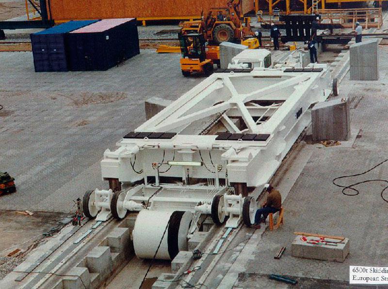 Huisman heeft voor dit project de twee 8200mt transporters ontworpen en gebouwd. De skid units zijn ontworpen om zeer nauwkeurig grote ladingen te hijsen, transporteren en plaatsen. Een verticale jack is in het midden van de skid unit geïnstalleerd om de last te kunnen hijsen en roteren. Het besturings- en controlesysteem is geoptimaliseerd om een snelheid van 200 m/h te kunnen garanderen.